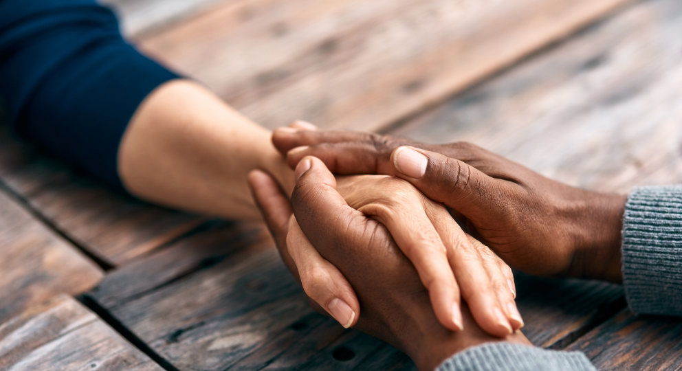 Image of man hugging woman and looking sorry and providing a mindful apology.