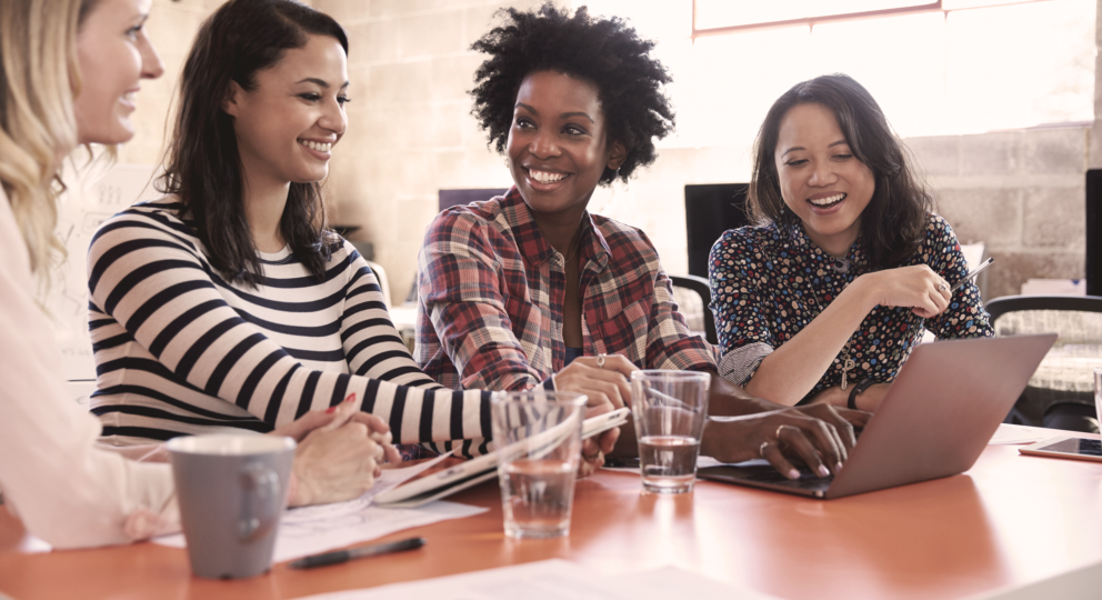 image of 3 people happily working together at a desk