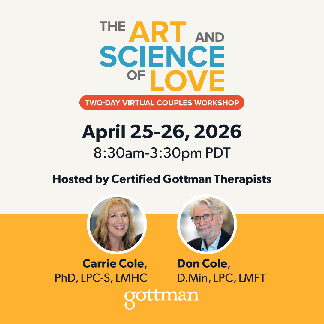 For an in-depth analysis of your relationship health check out the Gottman Assessment, a virtual relationship evaluation tool for couples.
