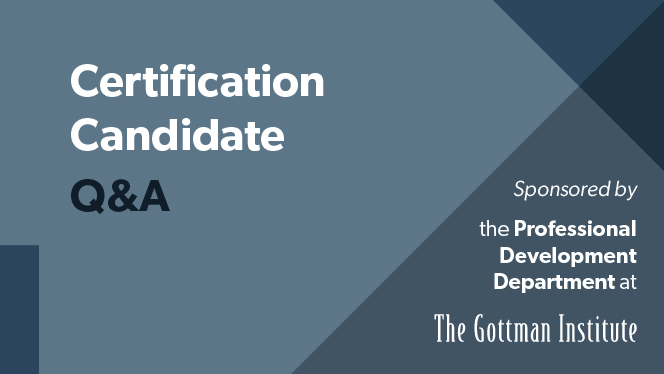 Hosted by the program manager, a video reviewer, and a consultant, these Q&As are an opportunity for Candidates to ask their Gottman Method and video review questions. Topics include: