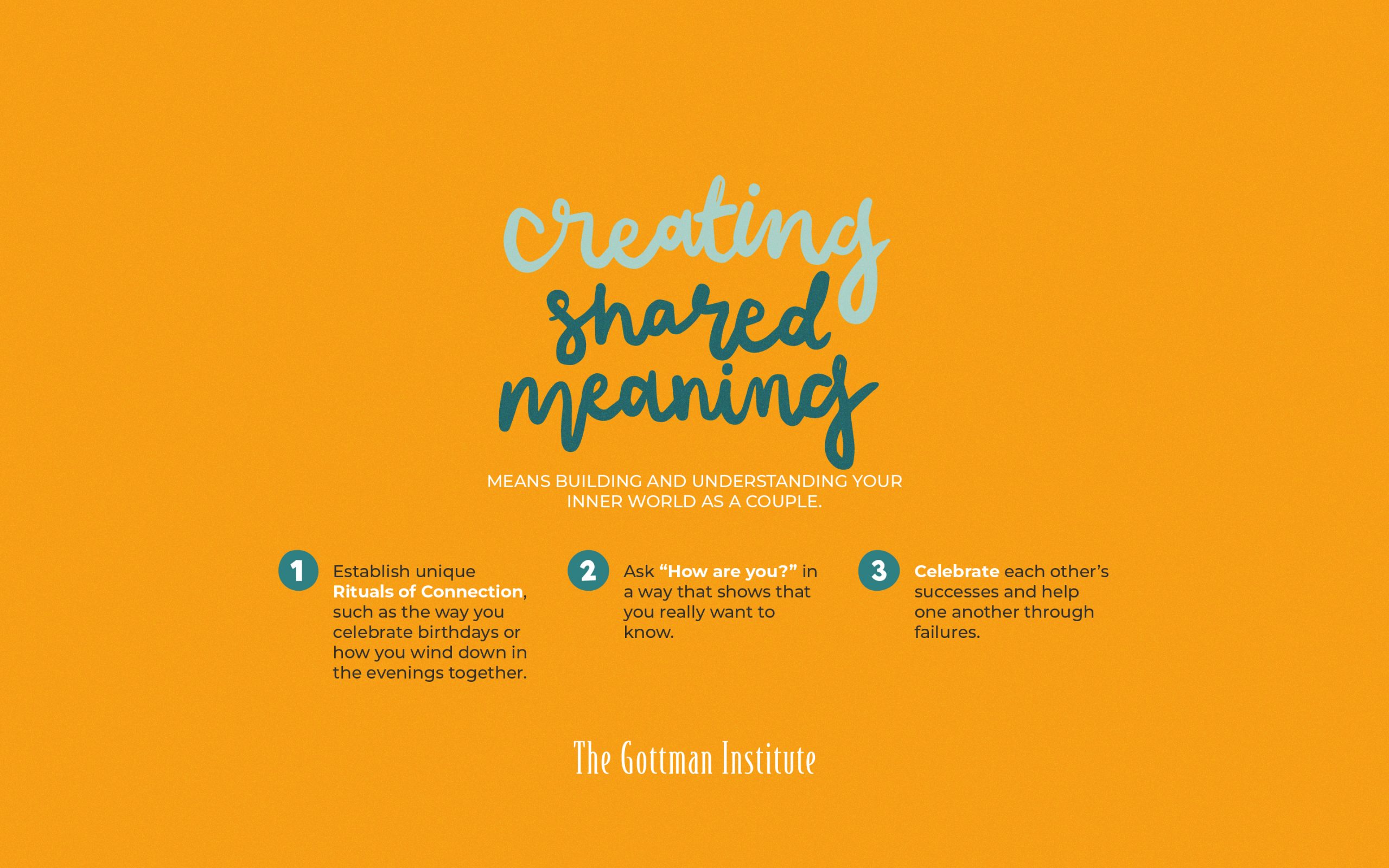 Creating shared meaning is all about understanding important visions, narratives, myths, habits, and metaphors about your relationship.