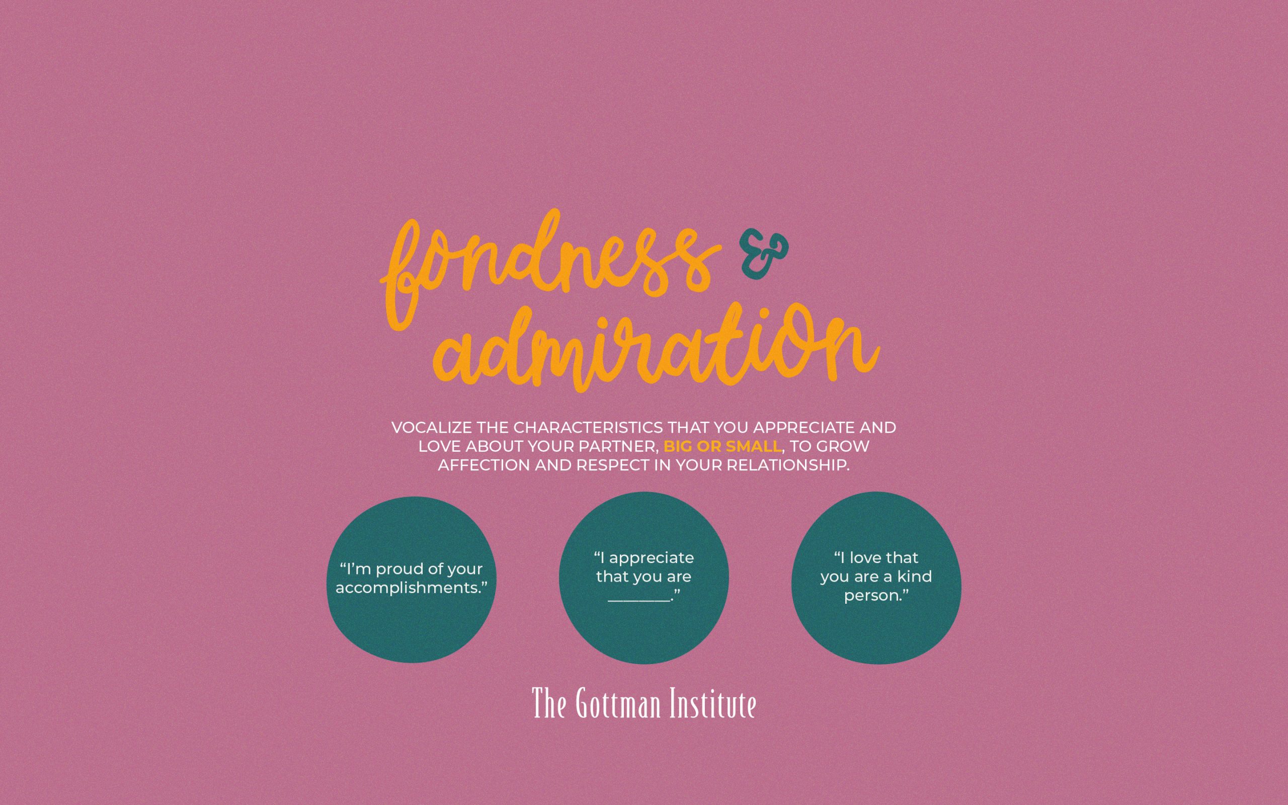 Research by Dr. Gottman uncovered a direct and very strong correlation between the amount of fondness and admiration in a relationship and a couple’s satisfaction with romance, passion, and sex.